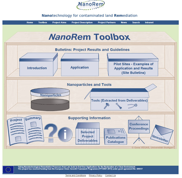 he aim of this page is to summarise sustainability considerations from the use of nanoremediation for contaminated soils and groundwater. More detailed information is available from the NanoRem Tool Box (http://www.nanorem.eu/toolbox/index.aspx#TB1).
